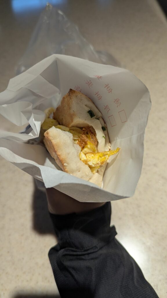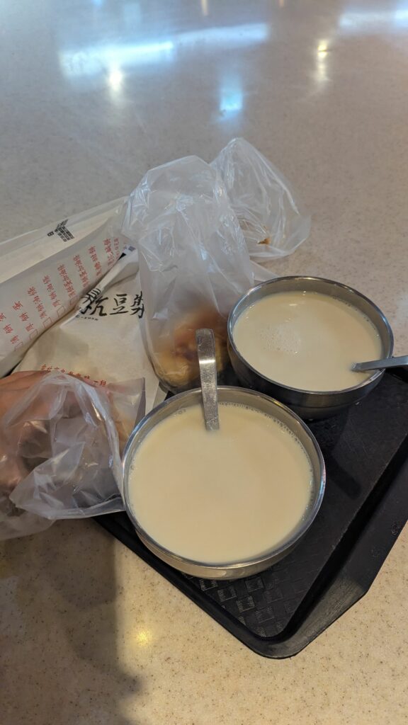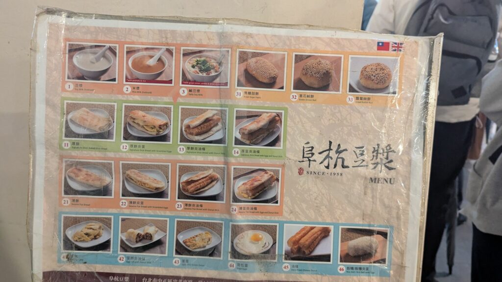 - Proponuję zacząć od śniadania razem z lokalsami. Choć czytałam o długich kolejkach, godzinach czekania… to zdecydowaliśmy się jednak zaryzykować i odwiedzić najpopularniejszą śniadaniownię w Tajpej: Fuhang Soy Milk. Na miejscu byliśmy już między 6-7 rano i stało w kolejce około 100 osób! nie przesadzam 😉 uznaliśmy, że poczekamy 15 minut i zobaczymy czy kolejka się posuwa do przodu. Czytałam również, że menu jest proste: zamawia się i praktycznie od razu odbiera, siada się gdzie wolne – dosiadając się do innych – je i wychodzi. Czekaliśmy w sumie około 30 minut – no nie mieliśmy nic innego do roboty o tej godzinie 😉 – więc na tyle osób przed nami, nie było najgorzej. P.s. Było warto!