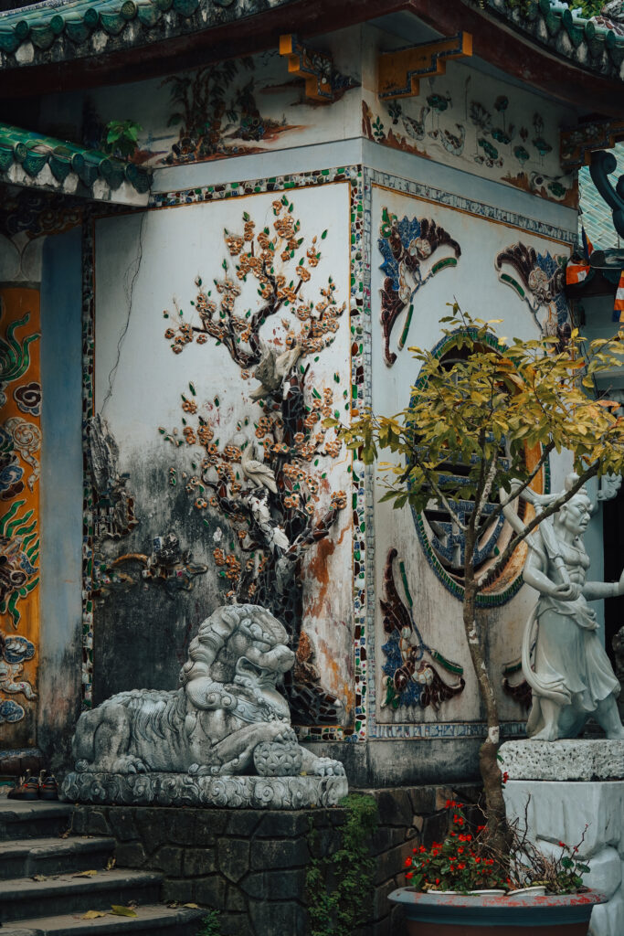 Chùa Nam Sơn to jedno z najbardziej fantastycznych miejsc w całym Da Nang, mimo że w przewodnikach pojawia się dopiero od kilku lat. To ogromny kompleks buddyjski zbudowany w tradycyjnym stylu, pełen czerwonych bram, drewnianych pawilonów, mostków, stawów i ogrodów, które wyglądają jak wyjęte z malowidła z dynastii Nguyen. Świątynia jest stosunkowo nowa, ale została zaprojektowana z taką pieczołowitością, że wygląda jakby miała setki lat. Szczególne wrażenie robią tu detale: rzeźbione balustrady, lampiony, freski z symboliką buddyjską oraz eleganckie, złocone dachy z charakterystycznie podwiniętymi narożnikami.